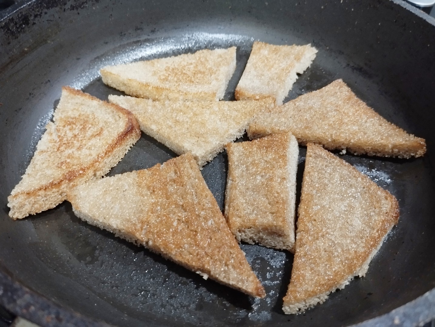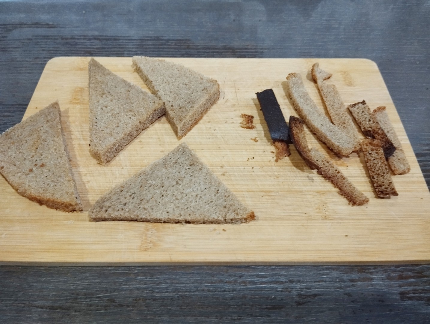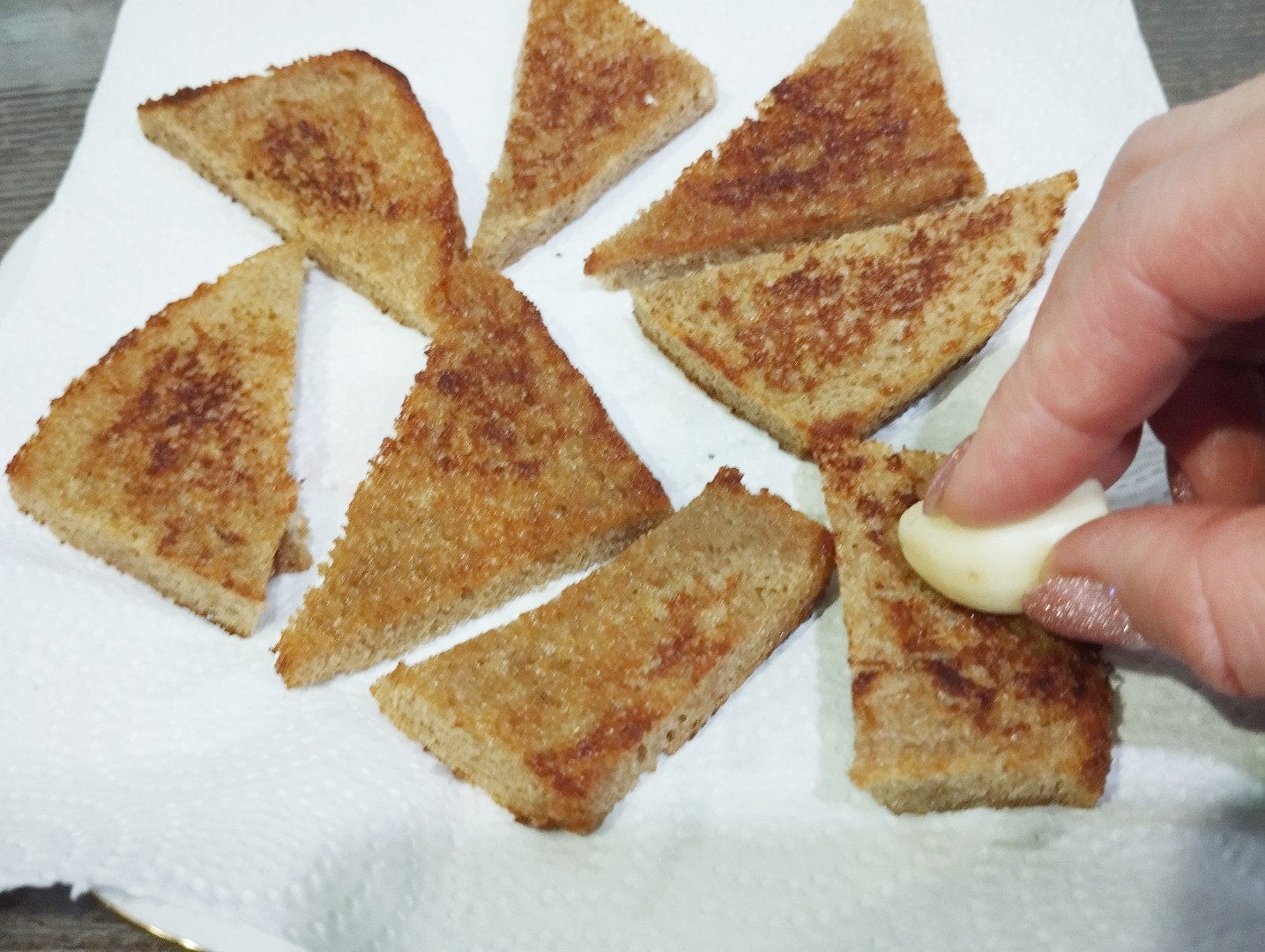 Гренки из черного хлеба с чесноком на сковороде приготовила для перекуса.