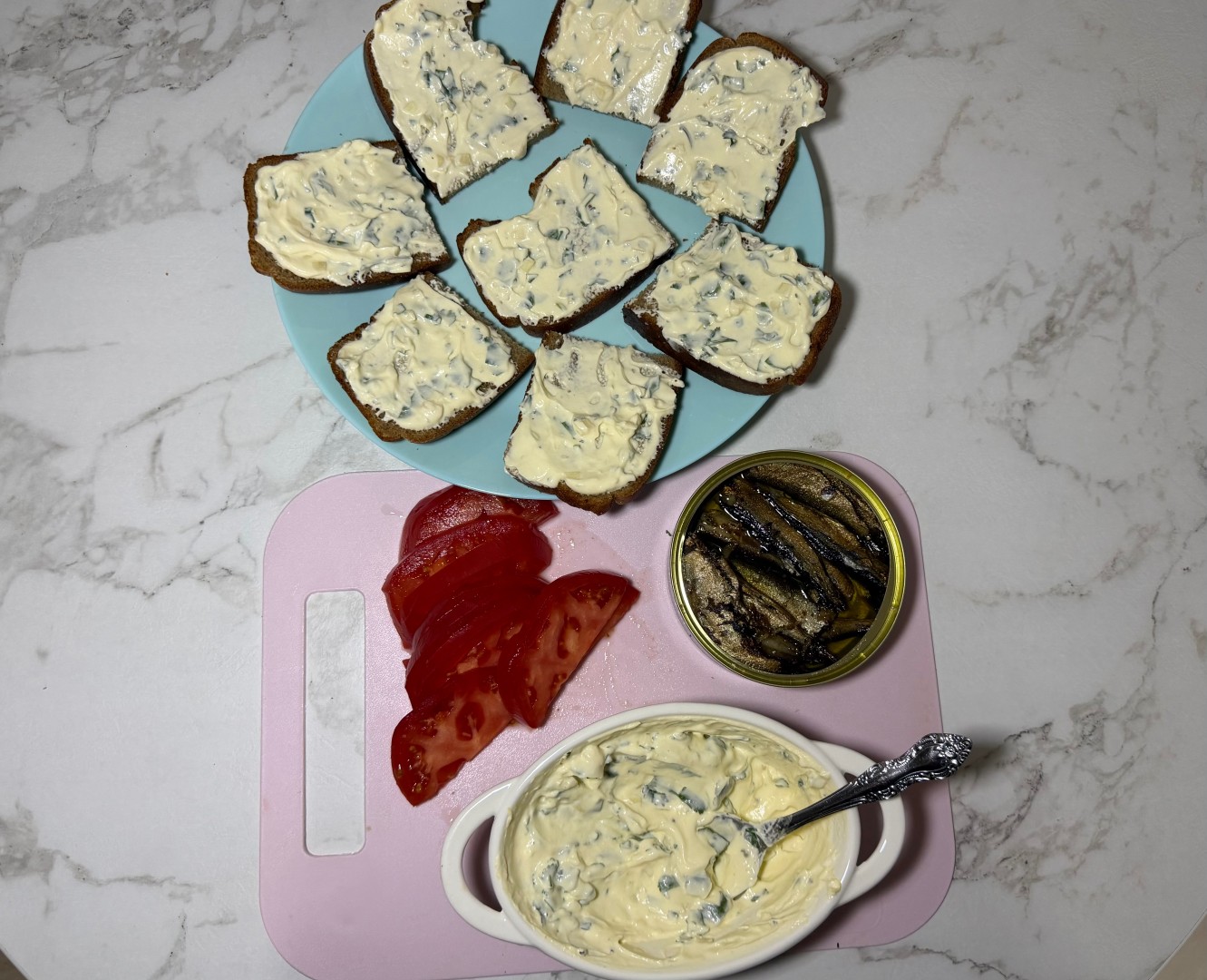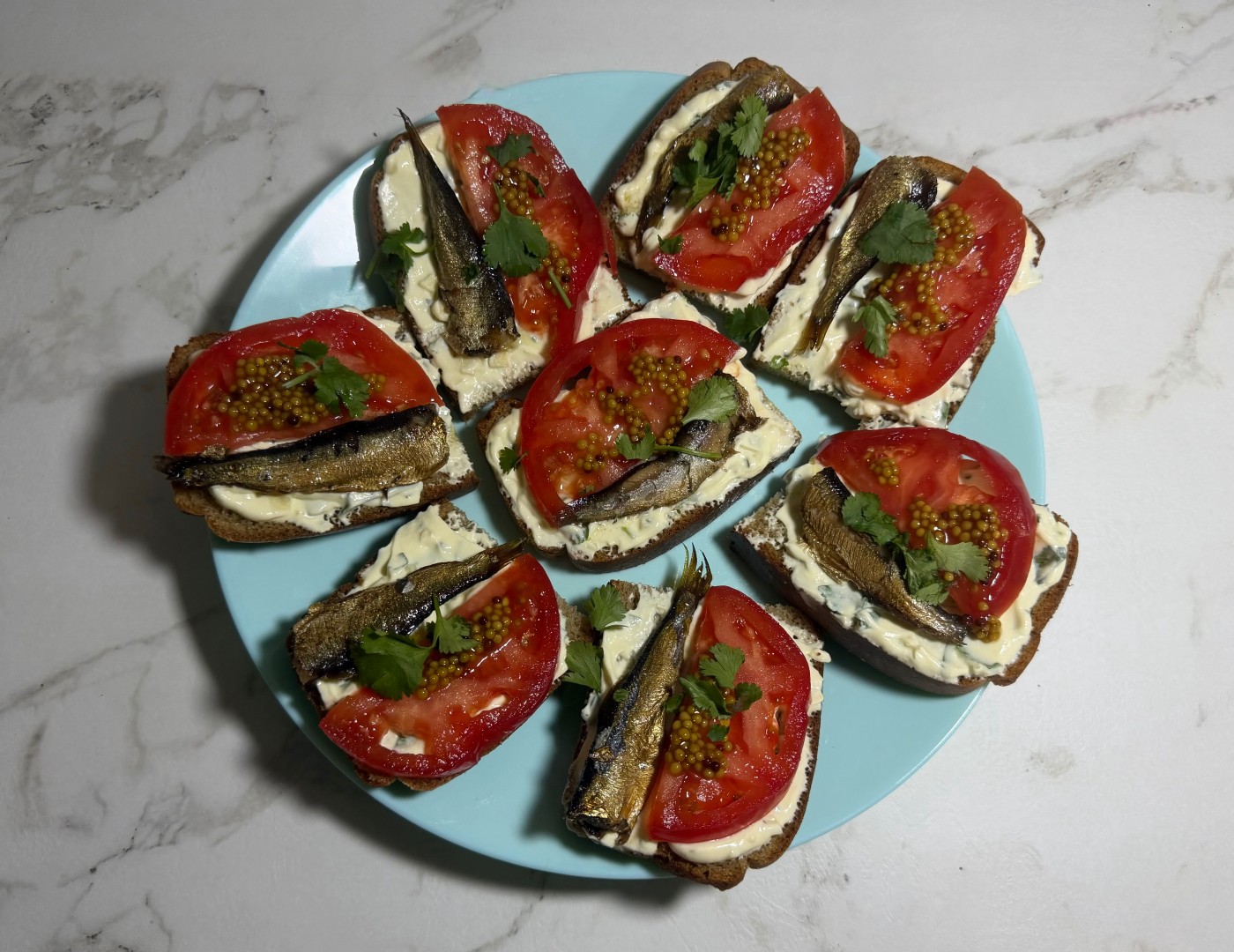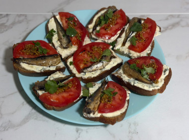 Обычно делаю бутерброды со шпротами с огурцами, но были только помидоры, поэтому решила попробовать этот рецепт и не разочаровалась! Интересная альтернатива привычной закуске.