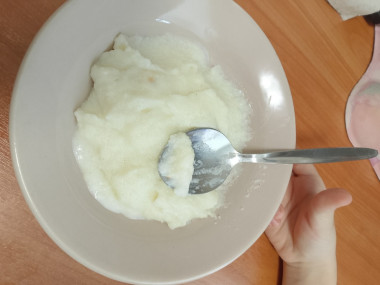 Взяла необходимые продукты,картошку сварила и помяла,когда она остыла добавила немного муки,вилкой повымешивала,добавила 1 яйцо,сахар и соль немного и оставшуюся муку и замесила тесто,муки потом добавила ещё немножко,тесто показалось диковатым,вымесила. В итоге тесто вышло классное,мягкое,не липкое.