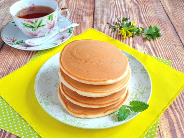 На завтрак приготовила панкейки на молоке с разрыхлителем по этому рецепту. На мой взгляд - это самый удачный вариант панкейков. Благодаря взбиванию яиц и разрыхлителю в составе, тесто получилось воздушным, со множеством пузырьков. На сковороде тесто не растекается, его нужно выложить ложкой и разровнять. У меня выходило по 2 ст.л. на порцию. Пекла на антипригарной сковороде, ничего не прилипло.