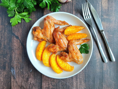 Куриные крылышки отлично сочетаются с запеченой картошкой, вся моя семья осталась довольна.