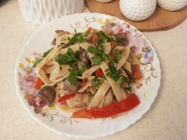 Вместо лапши порезала тонкий лаваш. 😊Остальное по рецепту. Получилось тоже вкусно. И не сильно он сладкий для меня.