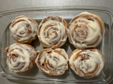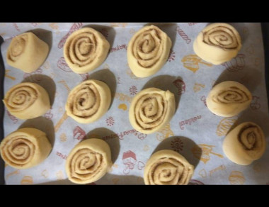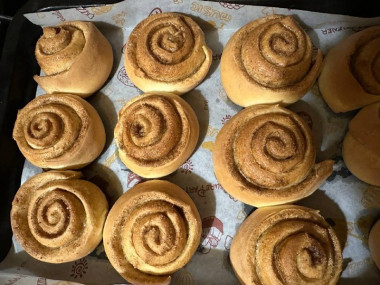 Делала в половину от указанного количества, но получился рулетик потоньше, а количество самих булочек побольше))). Очень вкусное, нежное тесто, в начинку добавили карамельный ванилин - запах при выпекании стоял божественный. Булочки мягкие, намазка не приторная, ее я делала с топленым молоком, его ушло немного побольше. Рекомендую всем, что любит выпечку!!!