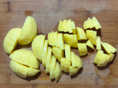 Капуста у меня "зимняя", а значит довольно жёсткая. Поэтому в кастрюлю отправила её вместе с картошкой. Молодую капусту лучше добавлять в конце варки.