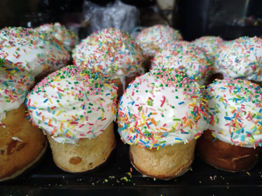 Безумно вкусные куличи. Пеку их уже на протяжении пяти лет. Очень сливочные, тесто не сухое, долго не черствеют. Очень удобны в приготовлении, что опара делается с вечера, а утром уже тесто и пекутся куличики. Рекомендую к приготовлению, многие мои знакомые пекут теперь только эти куличики. В тесто правда я еще добавляю шафран, получается безумно красивый желтенький цвет теста.