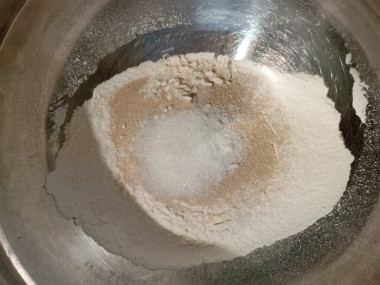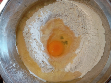 2. Теста сделала на две порции, вторую приготовила с картошкой (300 грамм) и сардельками (300 грамм). К этой начинке тоже отлично подошло.