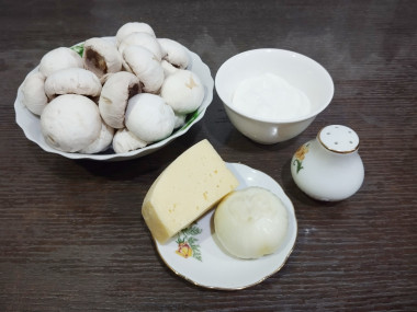 Грибы в сметане с сыром и луком в духовке запеченные- такое простое и аппетитное блюдо. Очень напоминает жульен, но даже без курицы это очень вкусно!