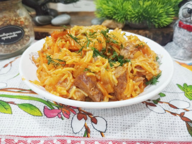 Время на приготовление ушло немного, ингредиенты доступные. Результат очень понравился. Мясо получилось нежным, в сочетании с овощами и вермишелью очень сытное и вкусное блюдо получилось!