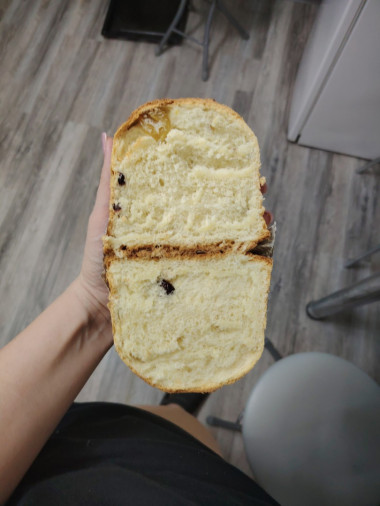 При первом укусе вы погружаетесь в мир вкусов: мягкое и воздушное тесто, пропитанное ароматами лимонной цедры и корицы, словно обнимает ваш язык. Внутри — щедрые кусочки изюма и цукатов, которые добавляют яркие акценты сладости и легкую кислинку. Каждая текстура идеально сбалансирована: хрустящая корочка сверху и мягкость внутри создают удивительное ощущение.