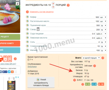 Так что же делать со сложными блюдами, как в них считать калории? Ну, с нами это довольно просто. Каждый рецепт на 1000.menu имеет в своем описании калорийность ингредиентов, в него входящих. Нужно просто “Посчитать калорийность готового блюда” (это ссылка(кнопка) на странице рецепта чуть ниже калорийности). Нажми на эту ссылку и на появившейся странице впиши в форме вес готового блюда. Естественно, нужно немного подсуетиться и это готовое блюда взвесить.