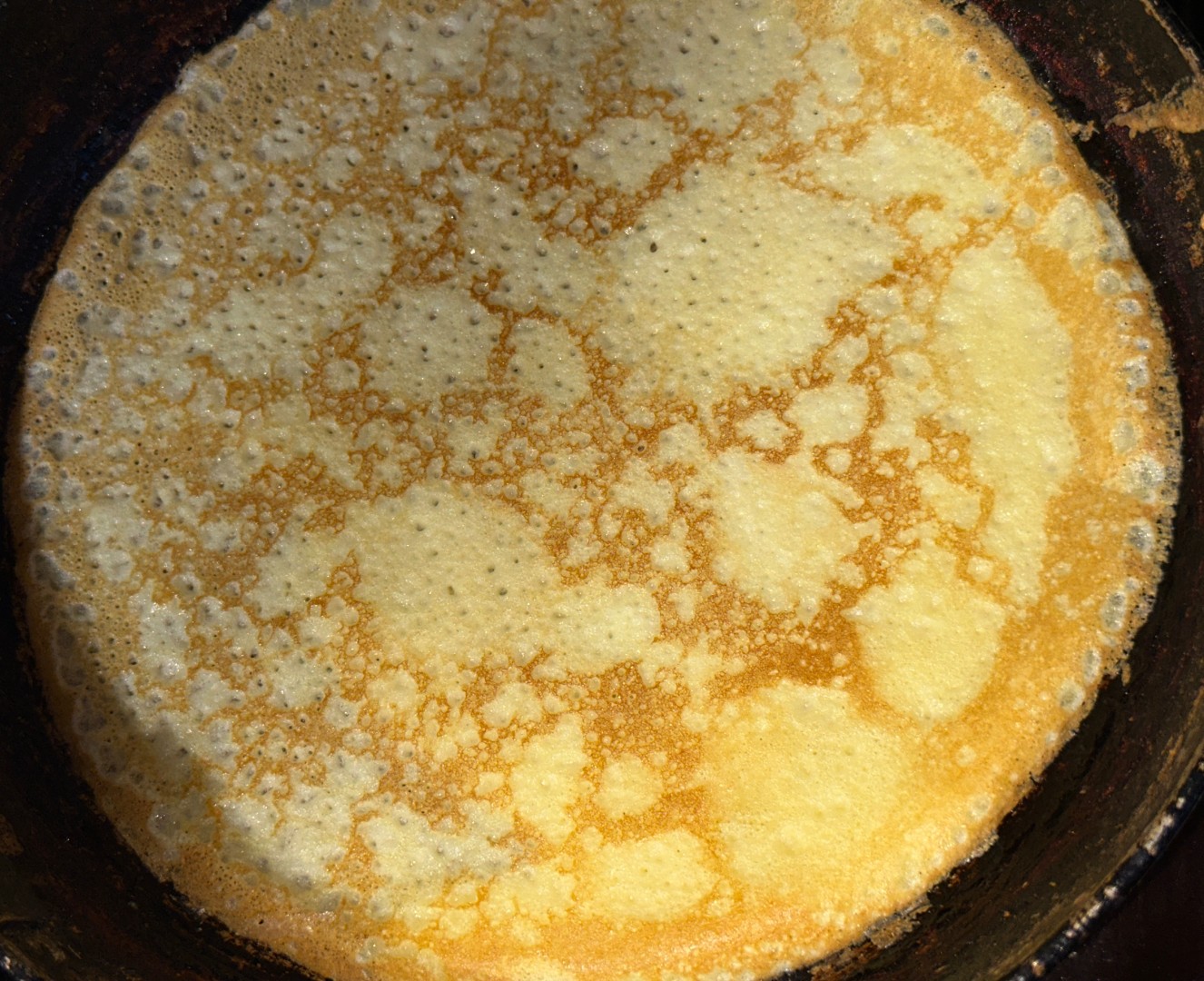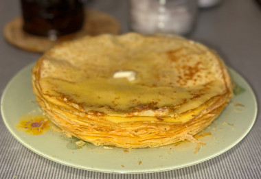 Очередной кулинарный эксперимент удался 🔥 обычно я готовлю в первый раз наполовину ингредиентов, а этот рецепт наоборот захотелось двойным на 4 яйца. Зная вкусы своих домашних, сахара я положила на 1 ст л меньше. Яйца взбила с сахаром, желток оказался насыщенным, поэтому куркуму не добавляла. Добавив муку, оставила её настаиватся на 50 минут. Для меня лично это не вызвало какого-то недовольства, обычные блины оставляю всегда на полчаса. Первые блины немного порвались, но это только из-за того, что не разогрела как следует сковороду. Последующие снимала без проблем. Каждый блинчик смазывала сливочным маслом. Мой посыл / это не обычные блины, это ДРУГИЕ блины 😍 и они получаются, если все делать по рецепту, очень вкусными. Спасибо автору за творческий подход к традиционным блюдам ❤️