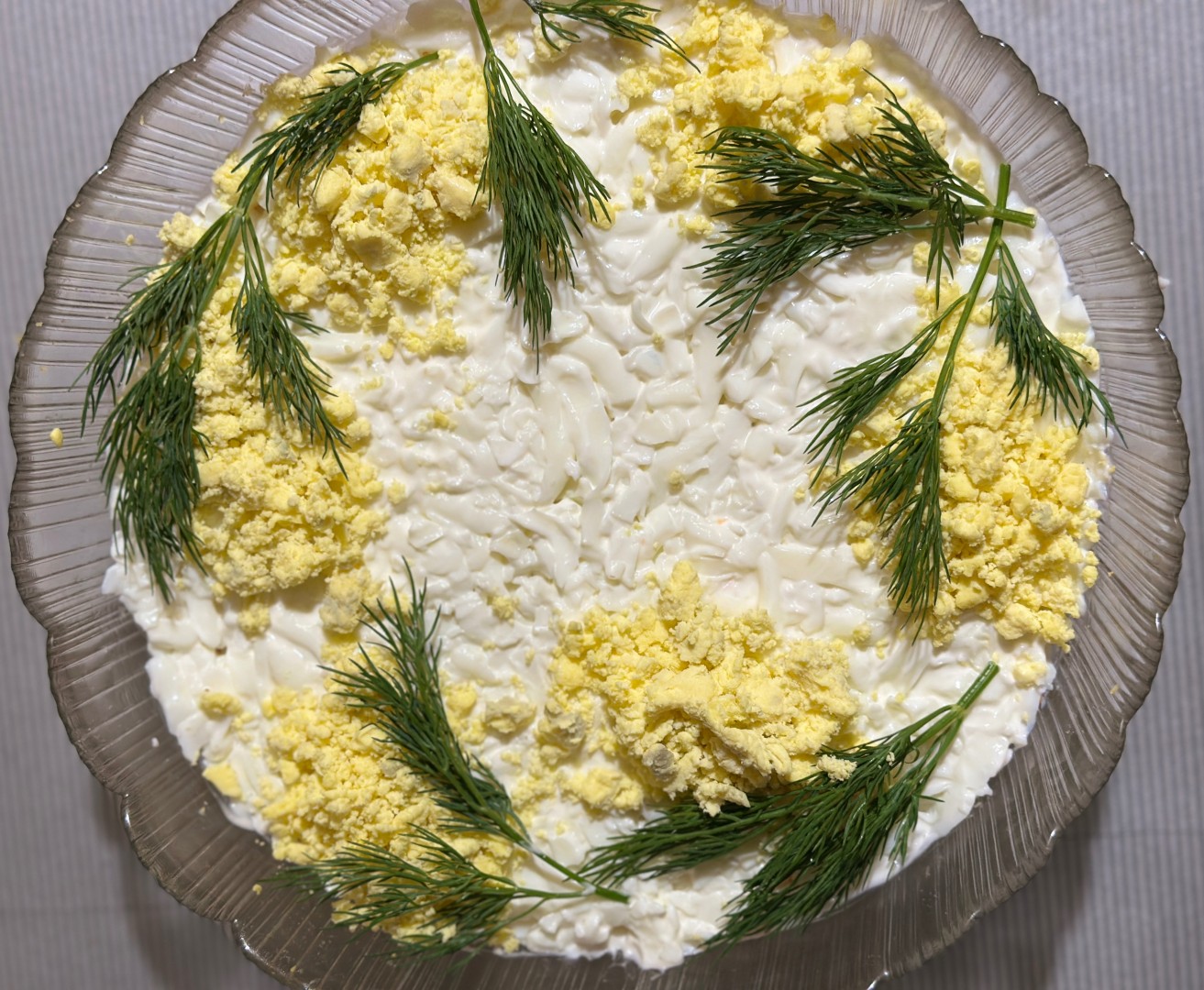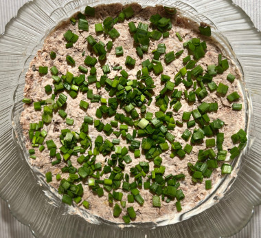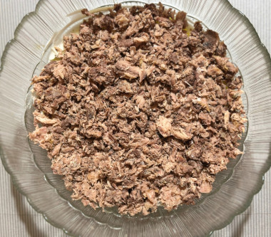 Классика вечна! Именно такой салат, без сыра готовила на праздники моя мама. Картофель и морковь отварила до готовности. Когда они остыли, натерла на крупной терке. У меня был тунец кусочками в собственном соку, поэтому первый слой картофеля я смазала майонезом. Вместо обычного лука (не очень люблю его в принципе) положила немного зеленого лука. Морковь с майонезом не смешивала, просто промазала. Слой белков украсила желтками и веточками укропа. Получился праздничный салат, украсивший пятничный вечер 🔥 Спасибо за рецепт!