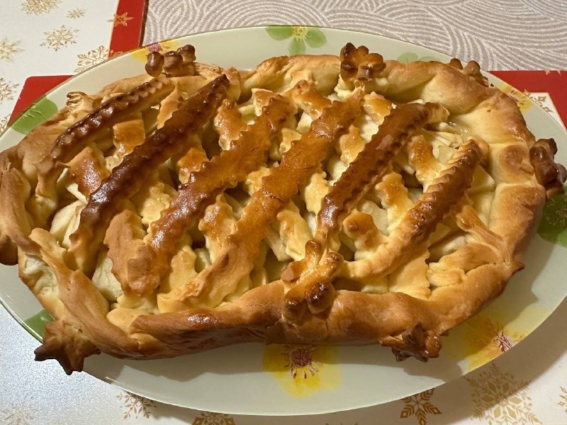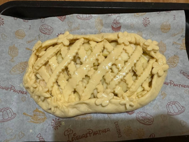 Ни разу в принципе не делала именно пирог, а тем более открытый пирог, но дома оказались яблоки, и рецепт такой красоты давно лежал в сохраненных. Полоски сделала роликом, цветочки тоже специальным трафаретом. К сожалению, сами яблоки были не сочными, поэтому по мне как будто пирог получился суховат. Для себя отметила, что нужно не боятся и покрепче прикреплять полоски к бортикам, выбирать сорт сочных и сладких яблок. Тесто, да и сам пирог получился вкусным, а еще я добавила немного карамельного ванилина - так аромат от выпечки стоял просто потрясающий. Юлия, спасибо за этот рецепт!