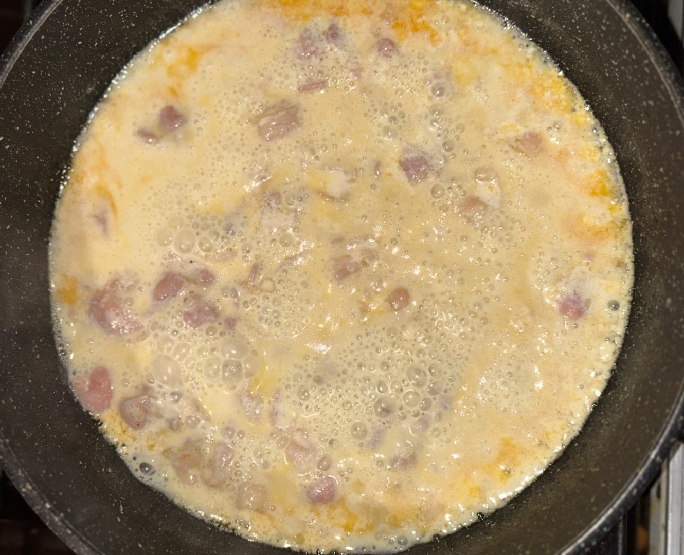 Копчёный бекон — интересная замена, даёт глубину вкусу. Здесь и правда важно не пересолить. Здорово, что блюдо получилось многогранным и вкусным!
