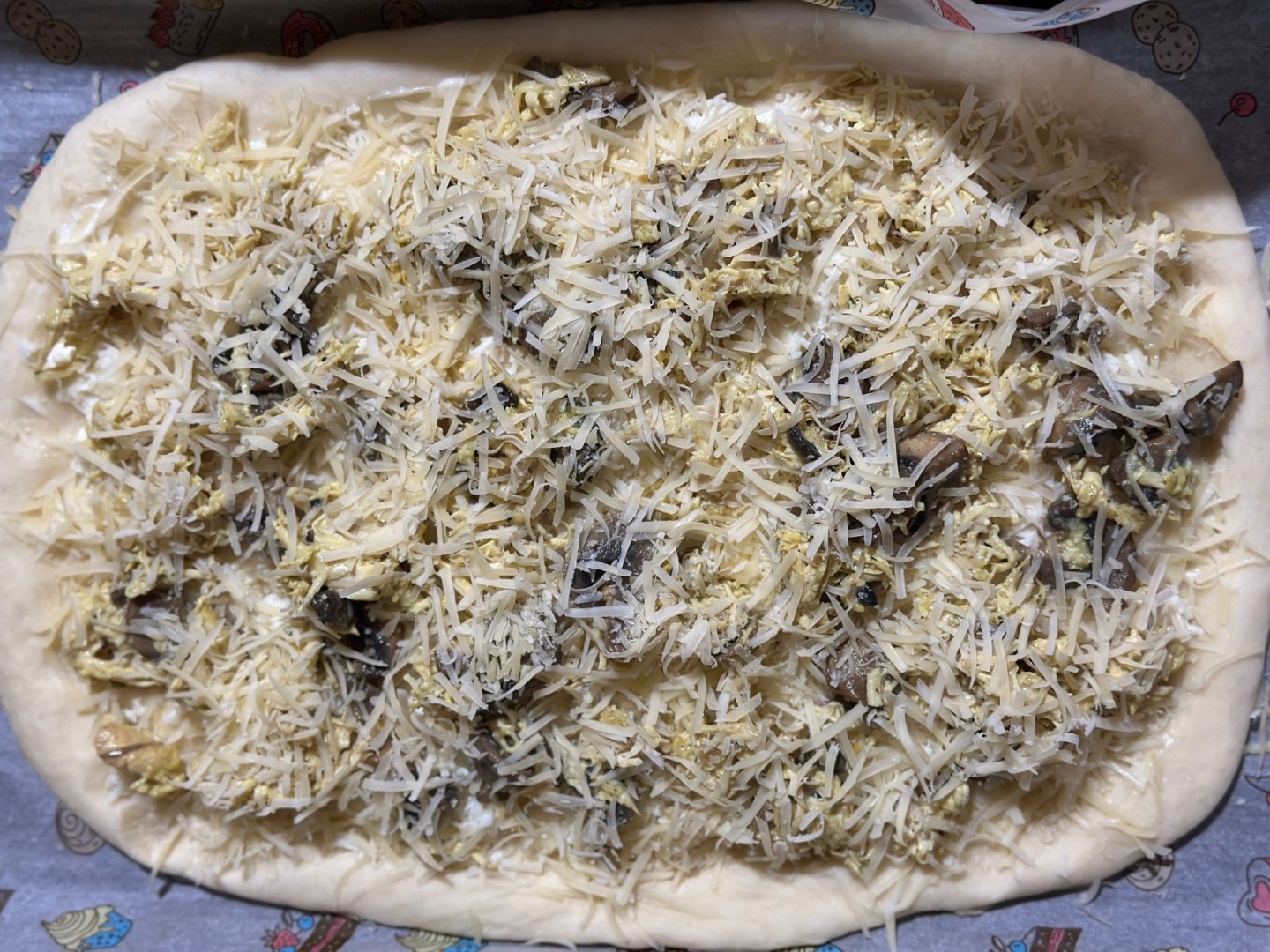 Отличный вариант несладкой выпечки. Тесто поднялось хорошо, мягкое и эластичное. Моцареллу натерла на мелкой терке и положила ее на тесто, а пармезаном посыпала сверху. Получилось вкусно, но из-за того, что не уследила за временем, она у меня получилась немного засушенной