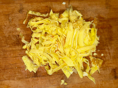 Кстати, если корейская морковь попалась слишком длинная, её можно слегка подрезать ножницами или ножом — так салат будет удобнее есть. Но это не обязательно. Рада, что рецепт оценили)