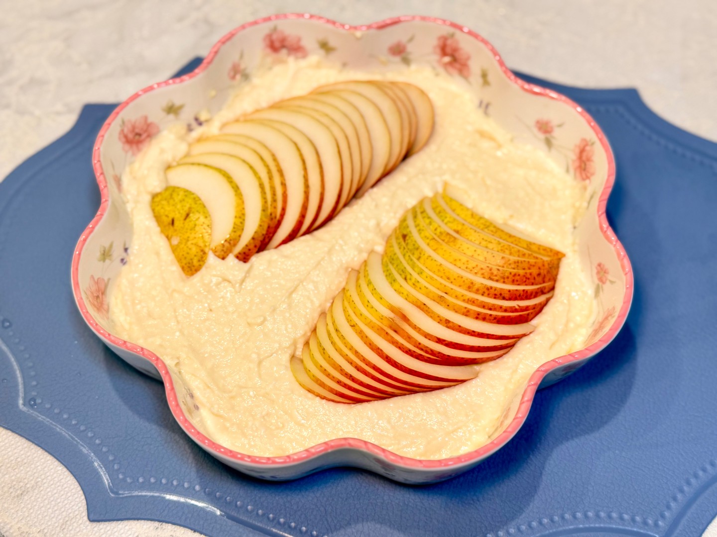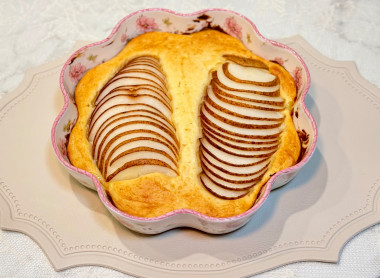 Давно хотела попробовать риккоту в выпечке. Для меня пирог получился по вкусу, как что-то среднее между кексом и запеканкой с очень нежным вкусом и текстурой. В процессе выкладки теста в форму, я поняла, что она очень большая, но меня уже было не остановить 😃 поэтому пирог вышел низким. Но для меня это вообще не страшно. Груша сюда очень в тему! Она хорошо пропекалась, но не подгорела и не засушилась, как я боялась, а дополняла блюдо - без нее было бы не то. Очень импонируют рецепты, где минимум усилий и грязной посуды - все замешивалось в одной тарелке одним венчиком - находка! Спасибо за чудесный рецепт блюда, которое еще и выглядит достаточно нарядно 😍
