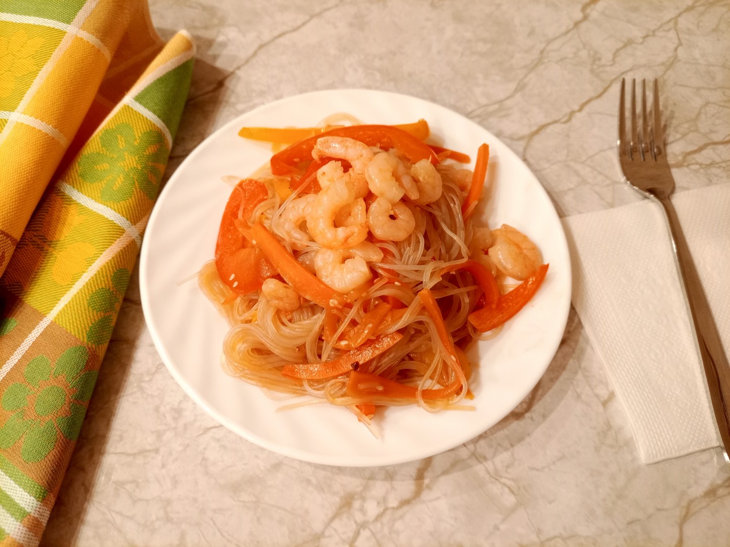 Фунчоза с креветками и овощами стала для меня неожиданным прекрасным открытием. Рецепт привлек своей лёгкостью и возможностью быстро накормить семью чем-то полезным и необычным.