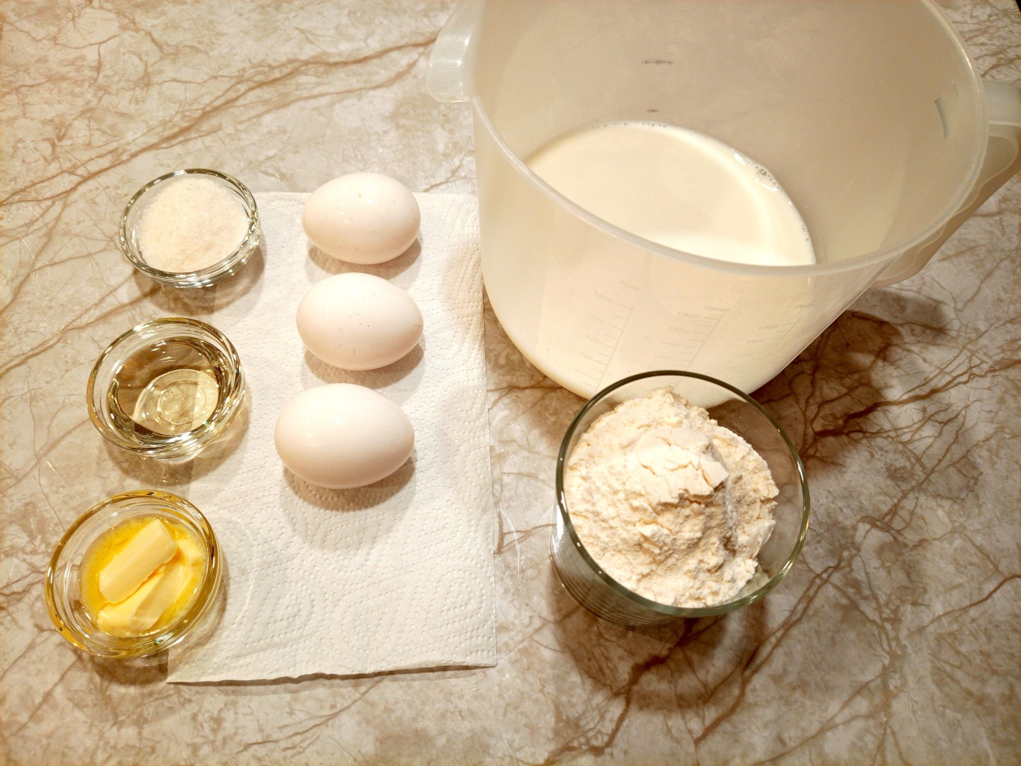 Т.к. столь необычным способом пекла блины впервые, старалась следовать инструкции. Только взяла яиц 3 шт, т.к они с2, и добавила пару ложек муки. Выпекала на большом противне (40*30 см), застеленном пергаментом.