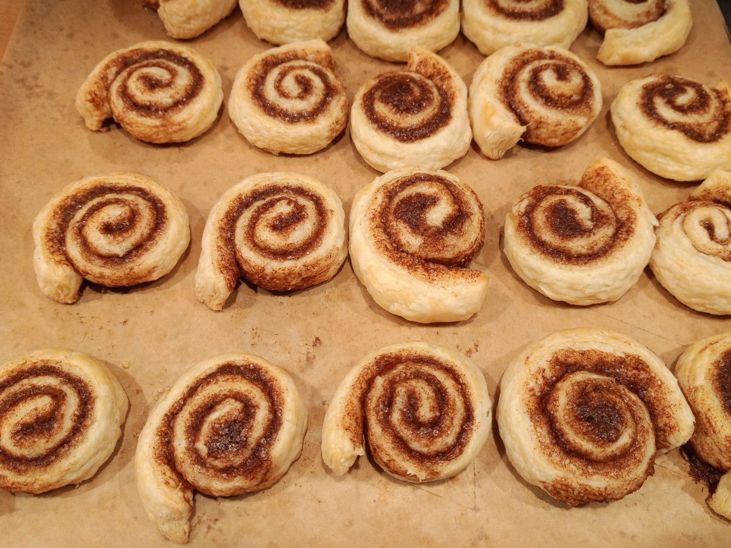 Я давно хотела попробовать сделать синабоны из слоеного теста, и этот вариант на готовом слоёном тесте стал идеальным началом.
