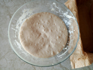 Делала всё строго по инструкции, единственное — расстойка у меня заняла чуть меньше времени. Сразу после замеса консистенция теста похожа на очень густые оладьи. А за время расстойки оно стало очень пузырчатое. После второго обминания я сразу переложила тесто в форму, застеленную пекарской бумагой (побоялась, что пристанет). Дала ему постоять минут 10, а затем поставила в холодную духовку и только потом её включила. Мой расчет оправдался: пока духовка нагревалась, тесто тихонько, но уверенно поднялось. Выпекала, как и советовала автор: сначала 10 минут при высокой температуре, затем около 20 минут при 220°С.