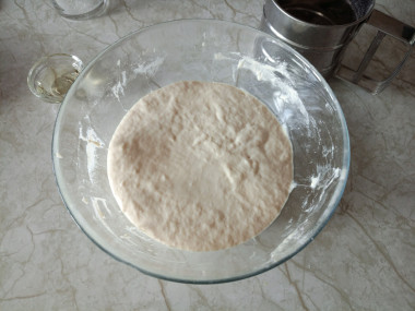 Тесто замешивается довольно просто, я использовала миксер, а потом перешла к замесу руками. Забавно получилось с кефиром и разрыхлителем:) Обычно я добавляю разрыхлитель в муку, а в этом рецепте нужно наоборот - не ожидала я настолько бурной реакции! Замешивать нужно очень быстро. Консистенция теста действительно очень комфортная для работы — пластичная, но совершенно не липкая, не рвется, не крошится.