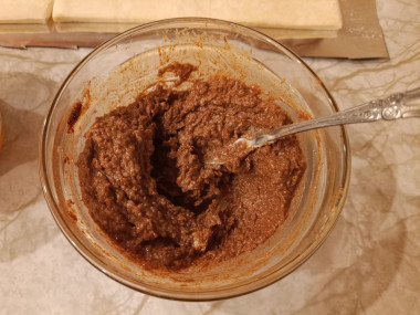 Тесто я не раскатывала, просто нарезала на 8 частей и при размещении в формочках немного распределила его руками. Начинки хватило на все 8 порций, не осталось ничего лишнего.