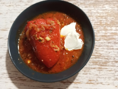 Перец очень полезный и вкусный овощ.Чтобы он был на столе круглый год, перцы я заготавливаю. Для фарширования замораживаю перец целиком, предварительно убрав сердцевину . Получается подобие стаканчиков, вкладывая их друг в друга, замораживаю большое количество, при этом экономлю место в морозильной камере. Блюдо приготовила по рецепту автора. Рис использовала бурый, томатный соус домашний, фарш был из лосятины. Перец не размораживаю, начинку закладываю сразу, после обжарки перец станет мягким, но форму уже не потеряет. За счет специй и домашнего соуса блюдо получается ярким, ароматным и очень вкусным. Если при подаче снять с перцев кожицу, добавить сметану, то это сбалансирует кислотность томатов, и блюдо станет еще вкуснее.