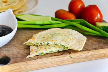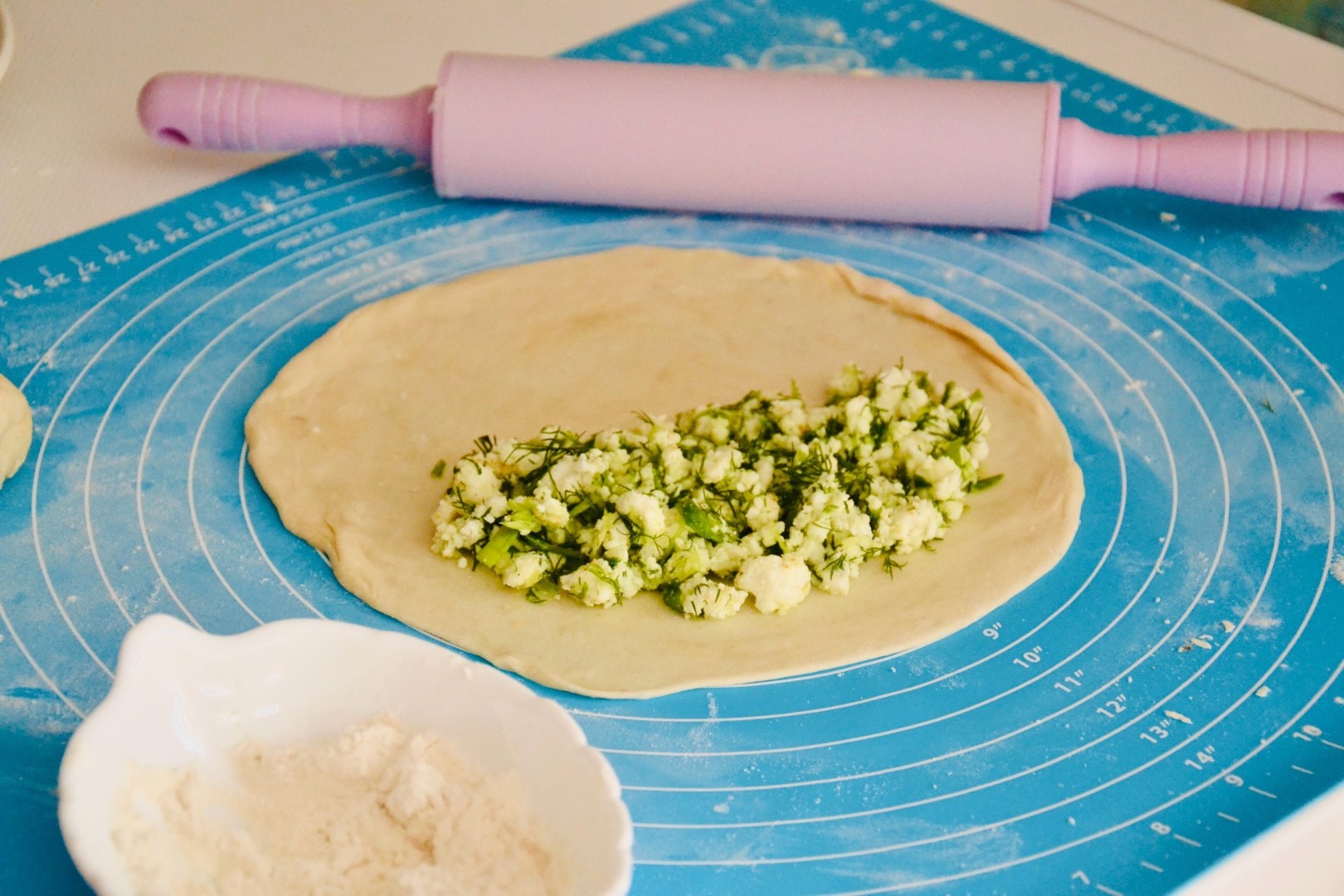 Азербайджанские кутабы с зеленью в домашних условиях вышли на все сто! Пока сезон не позволяет воспользоваться разнообразием зелени, в этот раз использовала укроп и зеленый лук. Летом буду пробовать готовить с большей вариаций зелени:) Сыр брала Адыгейский. С ним удобно работать - хорошо крошится в руках, но при этом остается текстурным ломким и по соли он приятен, не пересоленный. Также очень понравился сам рецепт теста. Муку добавляла неспеша, с осторожностью не забить тесто. В итоге тесто вышло мягким и эластичным, приятное при раскатке.