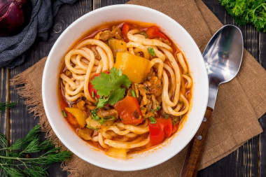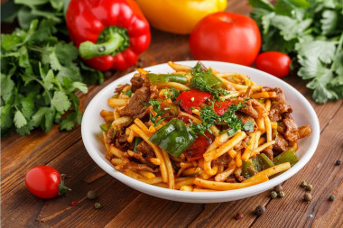 Босо лагман — это традиционное уйгурское блюдо, состоящее из длинной лапши, овощей и мяса. Вот простой рецепт для приготовления Босо лагмана в домашних условиях: