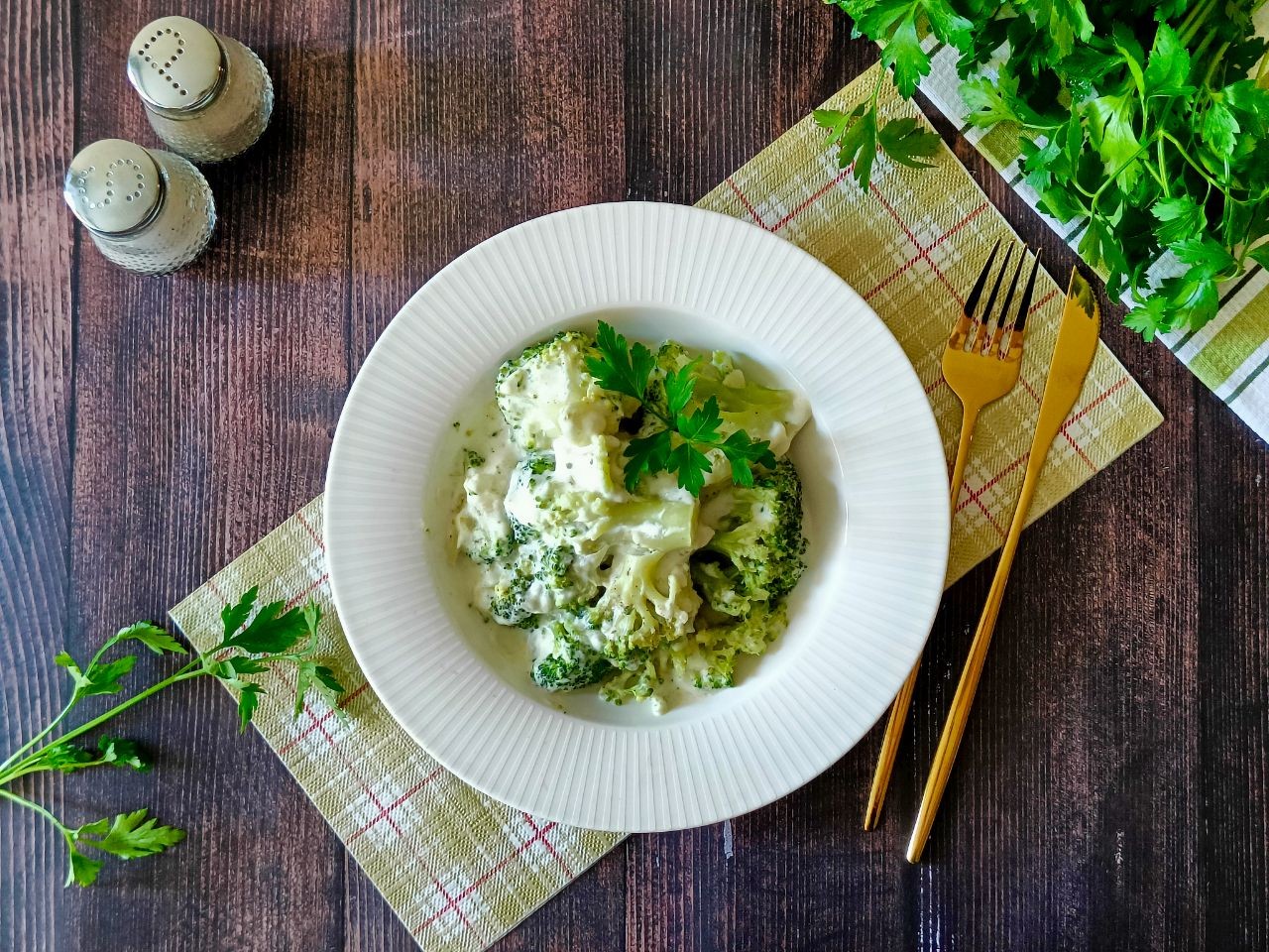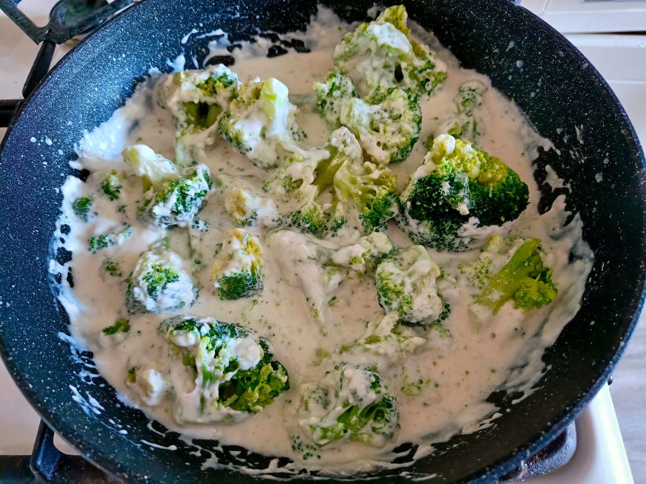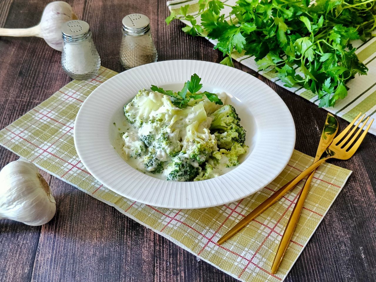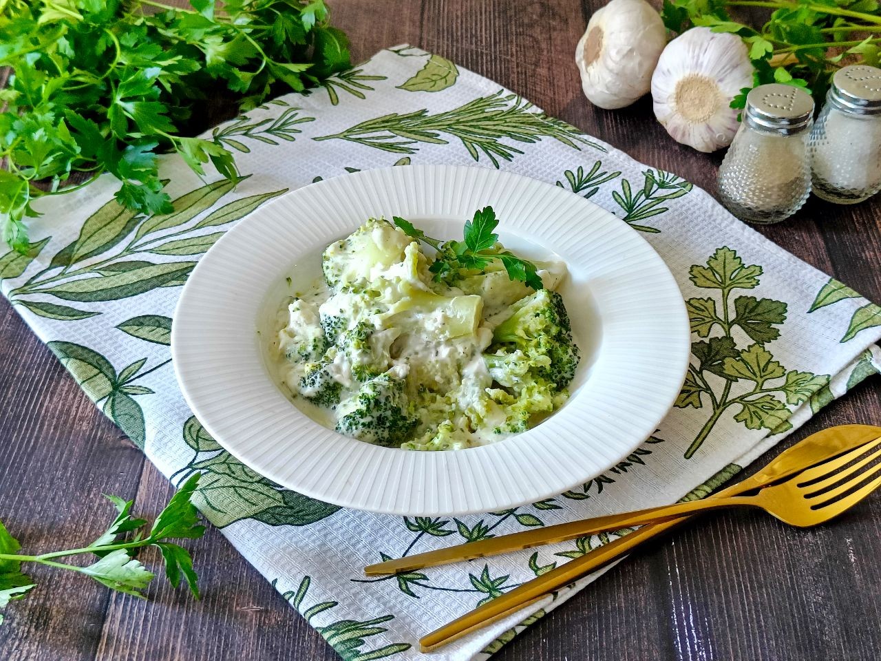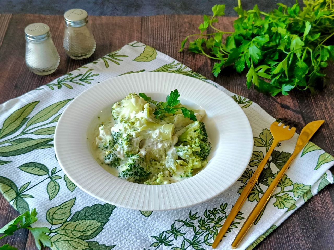 Приготовила брокколи в сливочном соусе по этому рецепту. Я использовала замороженную брокколи. Размораживать ее до конца не стала, только ополоснула водой и оставила в дуршлаге. Сковорода у меня очень широкая, жидкость из соуса очень быстро испарялась, поэтому я добавила немного кипячёной воды. В готовый соус выложила капусту и тушила все вместе минут 5. Очень вкусная и нежная брокколи получилась. Спасибо за рецепт!
