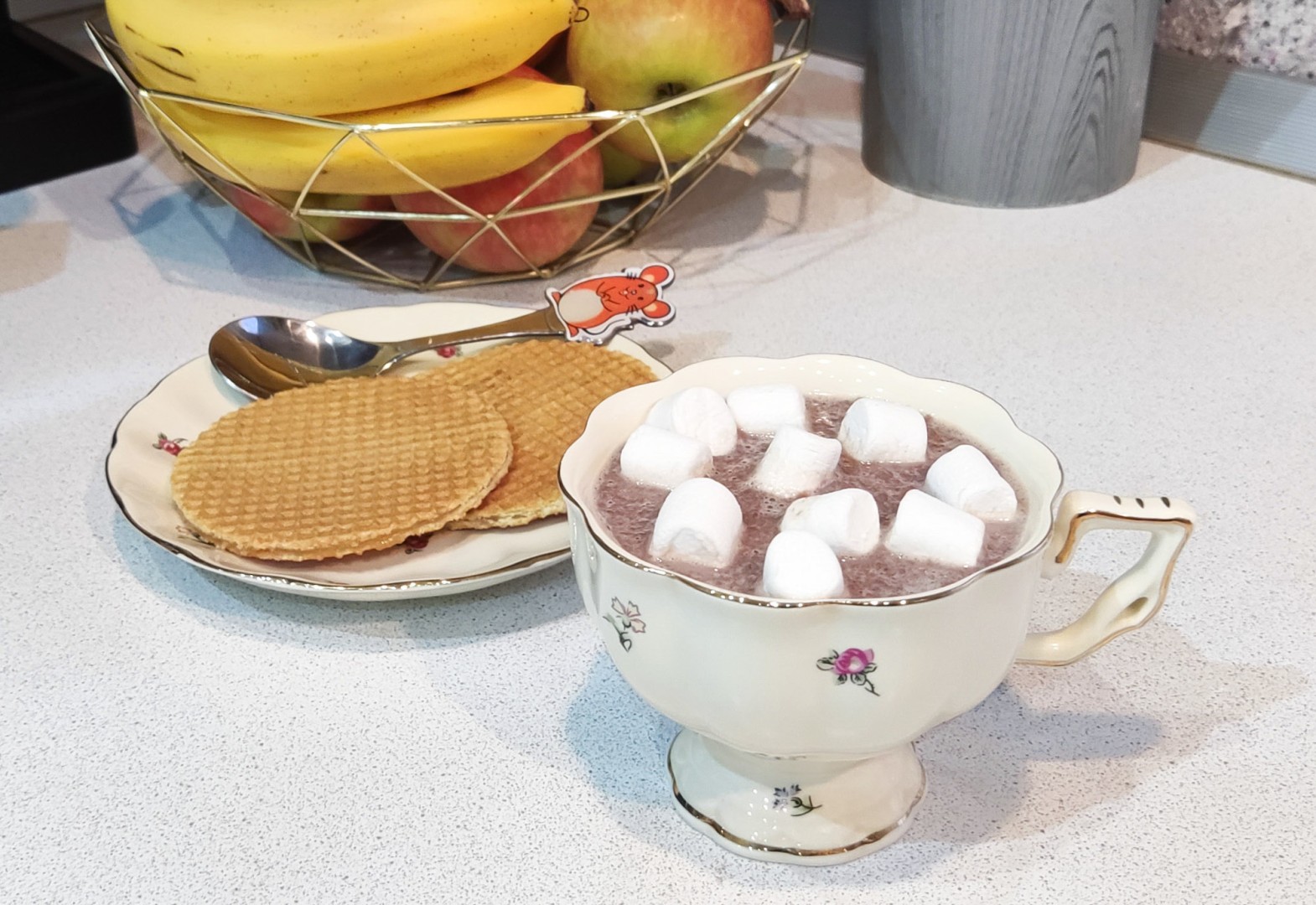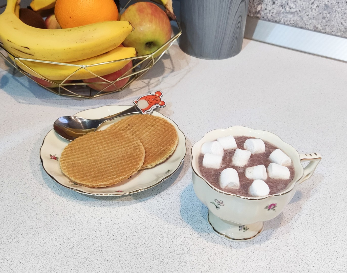 Какао с бананом оказалось отличным перекусом для ребёнка. Я сделала одну порцию на пробу. Молоко у меня безлактозное. Для взбивания массы воспользовалась погружным блендером. Сахар действительно не нужен в этом напитке, получилось достаточно сладко и очень вкусно. При подаче украсила какао зефирками. Напиток довольно сытный, поэтому может быть полноценным перекусом. Спасибо за рецепт!