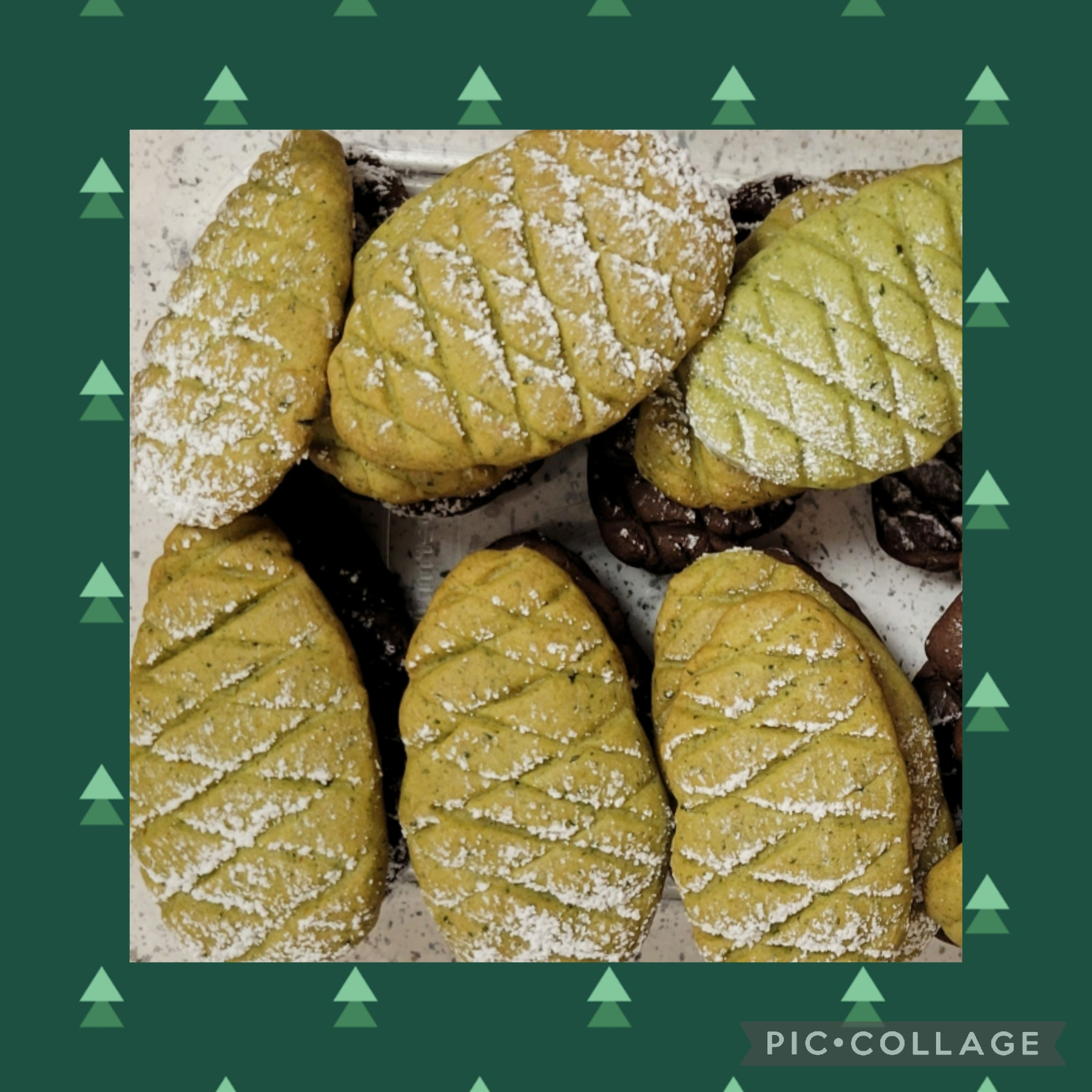 6. Выпекать при 180 С (355 F) - 10-15 мин, но важно НЕ передержать - цвет должен остаться зеленым, без золота (я чуть передержала, когда пекла на одном подносе с шоколадными шишками). По готовности - вынуть, дать остыть.