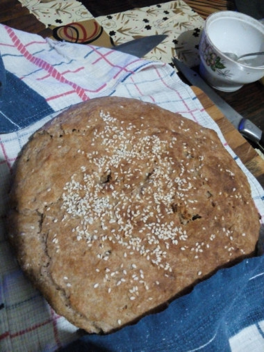 Дубль два: уже белая мука + полстакана цельнозерновой. Но вот, если честно, первый (который 100% из цельнозерновой муки) выглядел беспонтово, но на вкус слаще и что-то похожее на манник-пшонник, отруби не ощущаются, в общем- понимаю я наших предков, почему у них хлеб был главной едой))