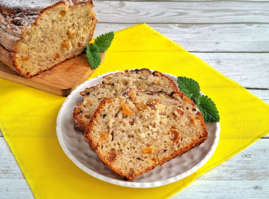 Кекс остудила на решетке и подала к чаю. Семья оценила этот вкуснейший десерт. Кекс невероятно нежный, мякиш влажный, а корочка хрустящая! Понравилось сочетание сочного, ароматного банана и сладкого изюма. Всем рекомендую опробовать этот рецепт. Из простых продуктов получается просто шедевр!
