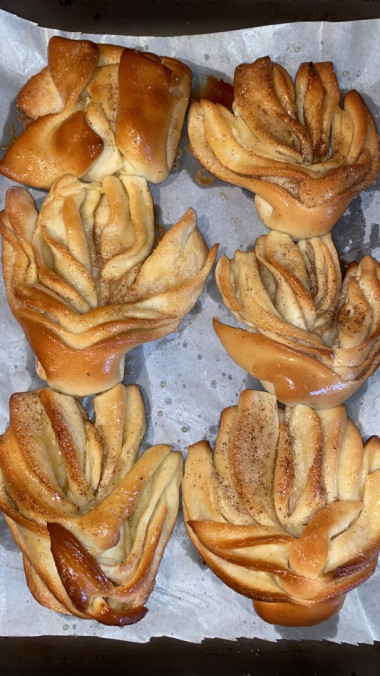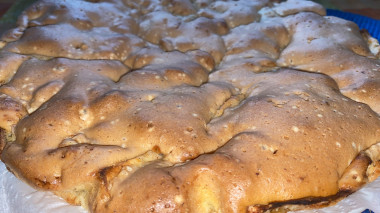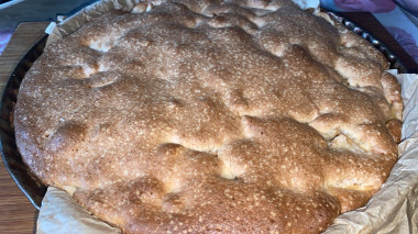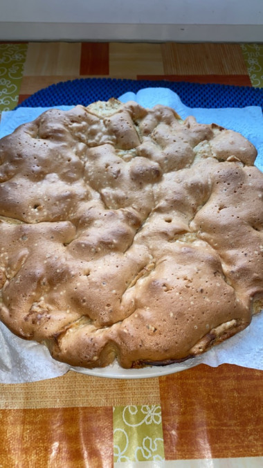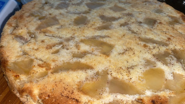 И у меня было 3 яблока выложил на дно посыпал Карицей сверху залил массой приготовленной