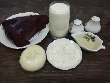 Печень вымачивала в молоке 2 часа,после чего аккуратно отбила, обваляла в муке и обжарила на сковороде с двух сторон.