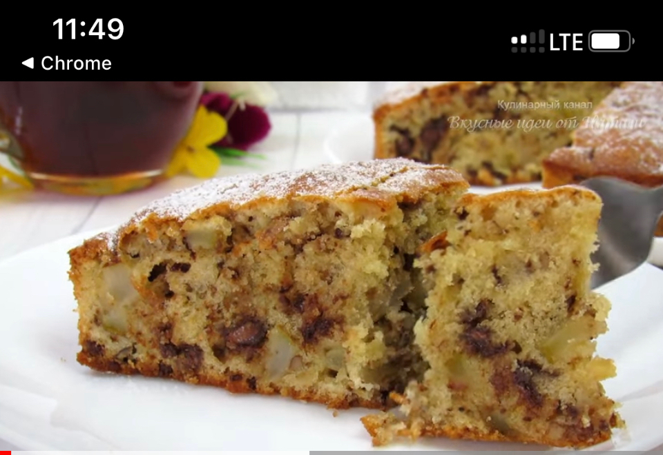 Добавить шоколад и грушу. Быстро аккуратно перемешать.