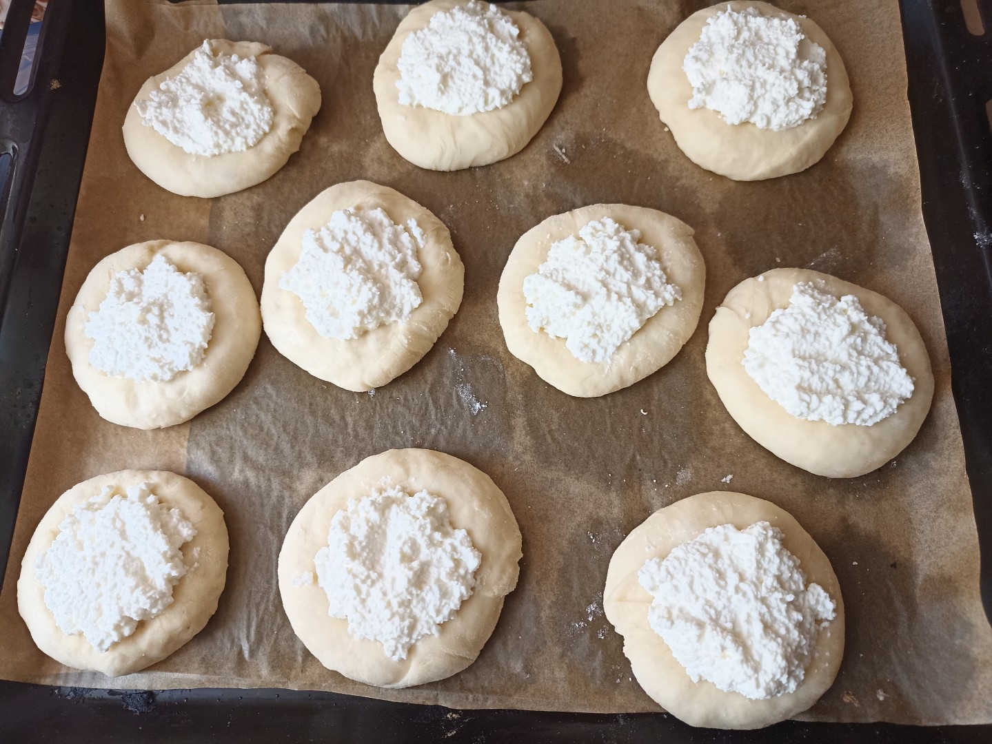 Испекла шаньги с творогом шанежки творожные. Замесила тесто, муки у меня ушло значительно больше, два стакана. Ориентировалась на консистенцию теста, чтобы оно получилось мягким, податливым. После расстойки тесто хорошо увеличилось в объеме. Разделала шанежки, в углубление выложила творожную начинку, на противне они постояли в теплом месте 15 минут. Выпекались при температуре 180 градусов 15 минут, до зарумянивания. Очень вкусная выпечка! Спасибо автору за рецепт!
