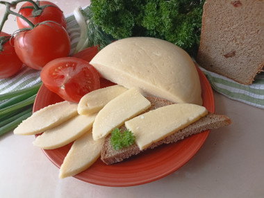 Приготовила твердый сыр из молока в домашних условиях. Творог у меня был фермерский, точный процент жирности не знаю. Молоко использовала натуральное. От рецепта автора не отступала, только по времени молоко с творогом у меня варилось немного дольше, около 40 минут, ориентировалась я на однородность массы. Постоянно перемешивала массу силиконовой лопаткой. После добавления сливочного масла проварила ещё минут пять. Затем влила яйца, с солью и содой. Масса сразу стала рыхлой, пушистой. Продолжала варить ее до уваривания и однородности. Затем перелила полученный сыр в застеленную пищевой плёнкой миску, после остывания отправила в холодильник на ночь ( так как готовила сыр уже вечером.) На завтрак оценили результат: сыр получился плотный, однородный, хорошо режется, не крошится и вкус приятный, сырный. Из данного количества продуктов у меня получился кружок сыра весом 280 грамм. Рецепт понравился, спасибо автору!