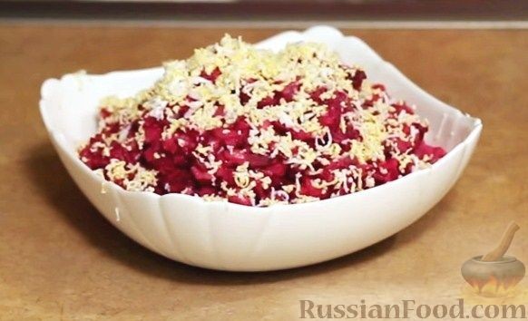 Вареную свеклу натрите на крупной терке.