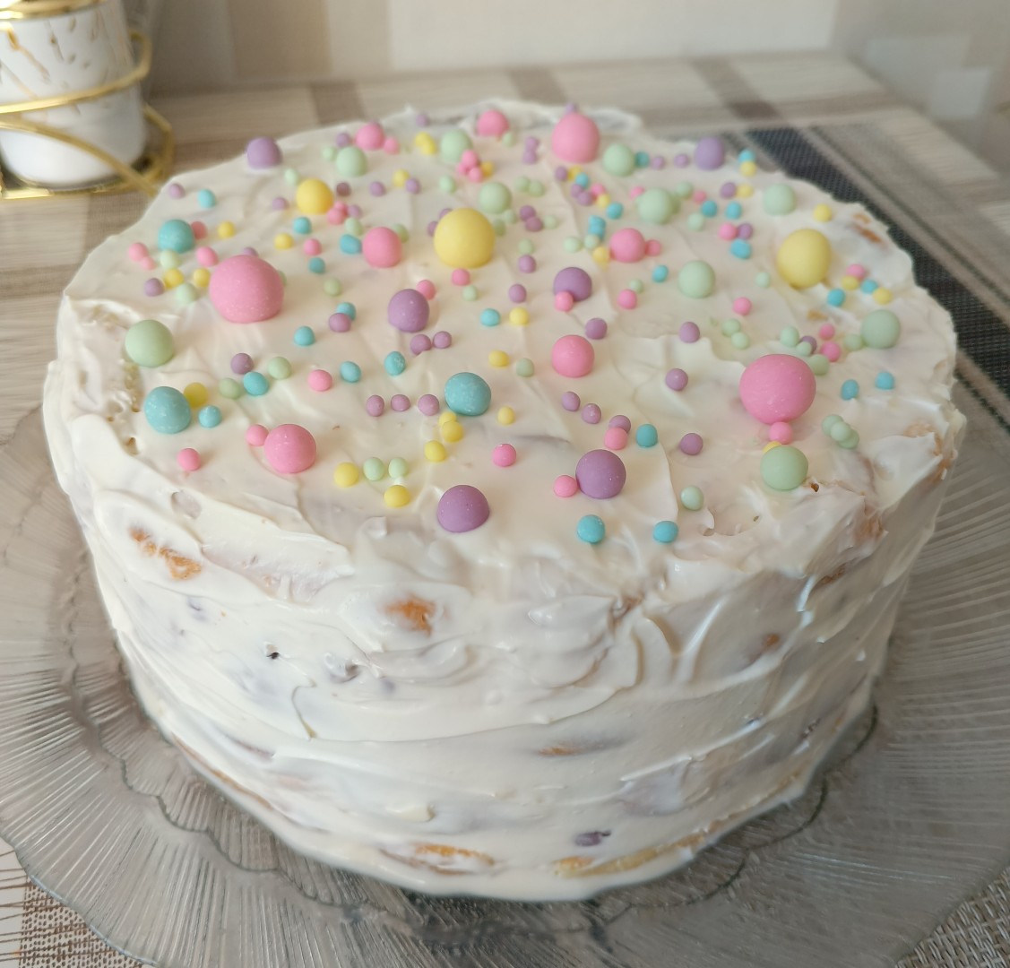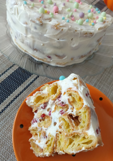 Отличный тортик к чаю . Просто , быстро, вкусно. Делала не первый раз по этому рецепту, а отзыв только собралась написать. В этот раз добавила между слоёв красную смородину. Спасибо огромное автору!