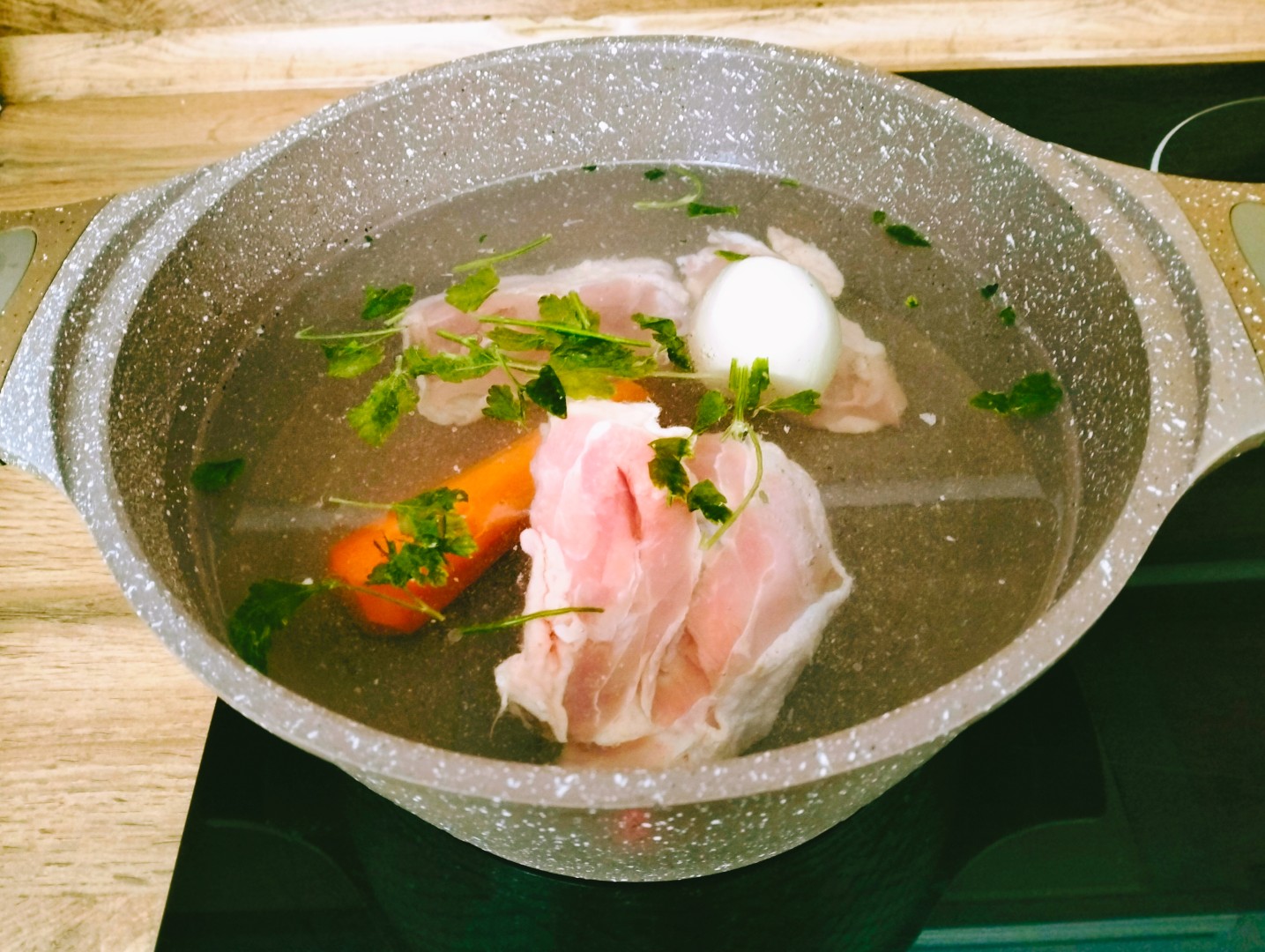 Всем здравствуйте! Решила приготовить на первое классические щи со свежей капустой. Готовила по рецепту на своем любимом сайте. Только бульон варила не с говяжьими косточками,а куриными бедрами с добавлением моркови,целой луковицей и корнями петрушки.Пока варилось мясо, приступила к нарезке овощей. Сначала картофель,капуста,морковь,помидор. Мелко порезала зелень. Сварила мясо,ушло по времени около часа. Положила нарезанный картофель кубиками,капусту. Через 15 минут положила зажарку. В конце положила зелень,соль, перец молотый. Заправила вкусные щи домашней сметаной,ну ооочень вкусно и просто!