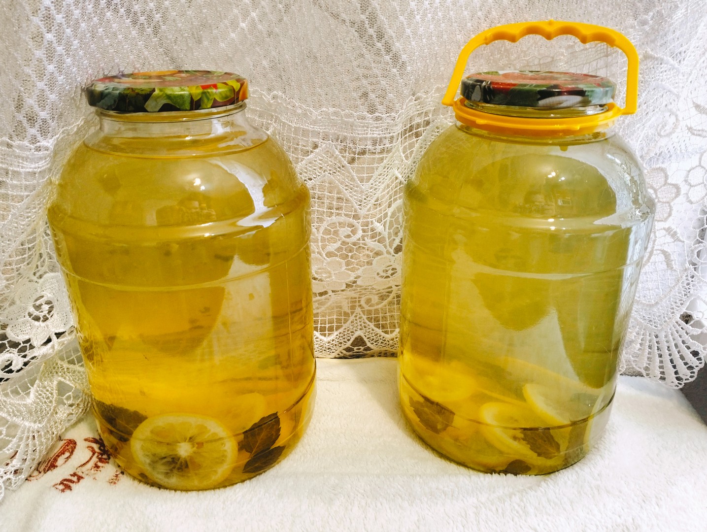 Наша семья очень любит компоты. И вот в поисках интересного рецепта,наткнулась на рецепт компота с мятой и лимоном на зиму. Простерилизовала банки,крышки,приступила к приготовлению компота. Нарезала,по совету автора,тонко лимоны,очистила мяту. Я брала компоненты больше,так как делала две 3-х литровые банки, соответственно у меня вышло на них: около 800 грамм сахара (на одну банку по 400 грамм, я брала чуть больше сахара,чем в рецепте), два лимона и четыре веточки мяты. Делала компот как в рецепте,на вкус ещё не пробовала,но выглядит он чудесно! Думаю,до зимы он точно не задержится,а выпьется намного быстрее!